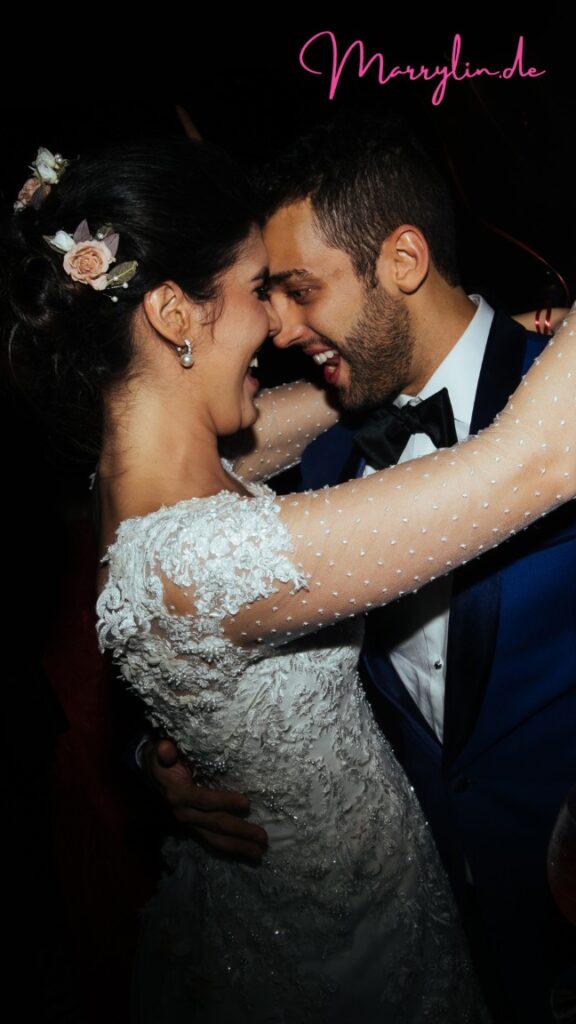 Legt früh fest, welches Tanzerlebnis ihr wollt (klassisch, modern, Mix) – und stimmt Kleid/Anzug, Schuhe, Tanzfläche darauf ab. Alles, was euch Bewegungsfreiheit gibt, lässt euch sichtbar entspannen.