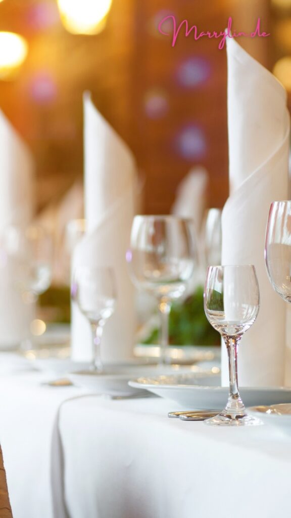 Runde Tische fördern Gespräche über den ganzen Tisch, lange Tafeln wirken festlich und rustikal, während U- oder E-Formen Struktur mit Lockerheit verbinden. Die Wahl hängt vom Stil und der Größe eurer Location ab.