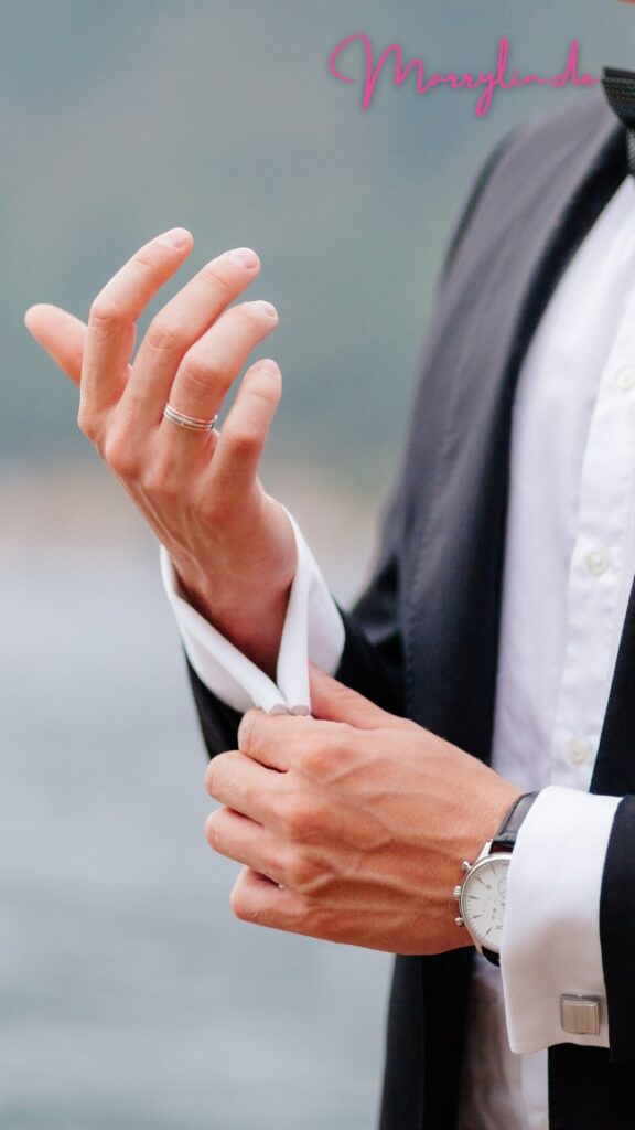 Definiert euer „Style-Statement“ (klassisch-clean, modern-minimal, lässig-italienisch, edel-urban). So trefft ihr zügig Entscheidungen bei Haarschnitt, Bartlänge, Accessoires und Duft – und euer Stil passt stimmig zu Location, Tageszeit und Braut-Look.