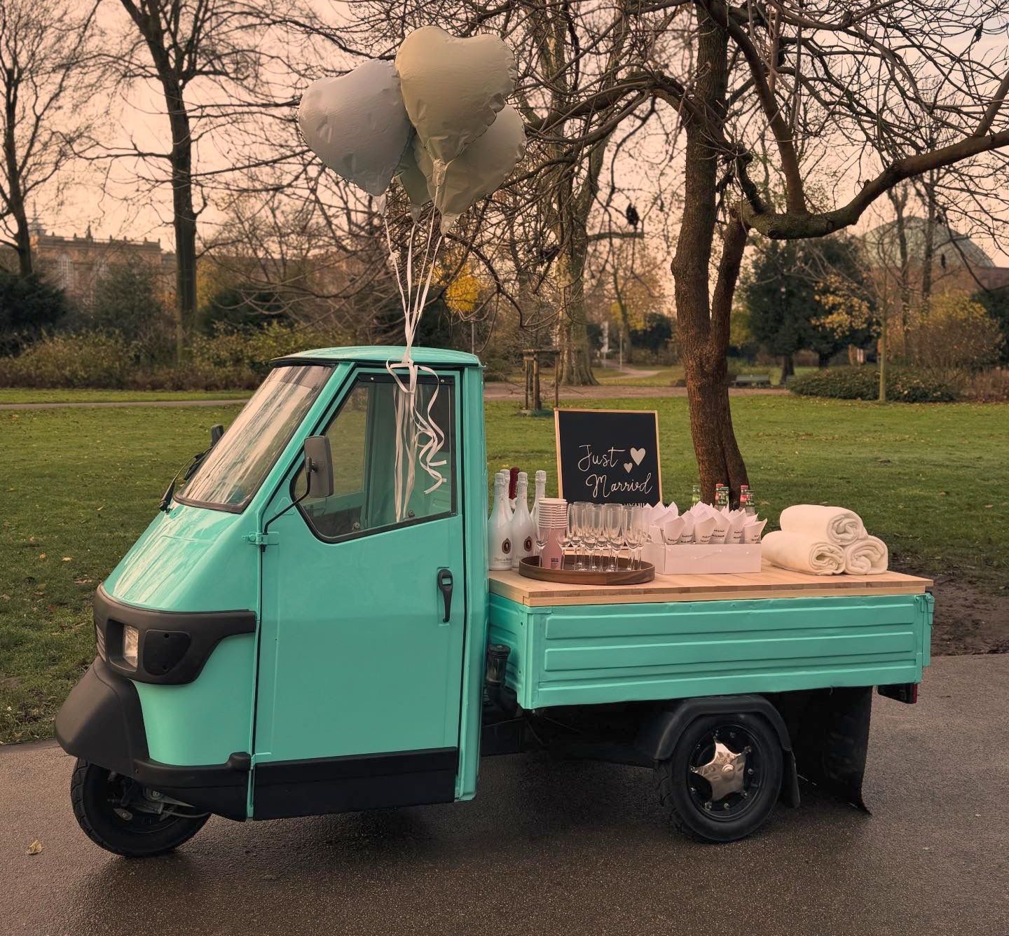 Stellt euch vor: Ein liebevoll dekoriertes Dreirad rollt direkt zu euch – und sorgt sofort für gute Laune. Ob Standesamt, freie Trauung, Garten, Strand oder Hochzeitslocation: Die Ape-Roll ist ein unkompliziertes Highlight, das perfekt in moderne Hochzeitskonzepte passt.