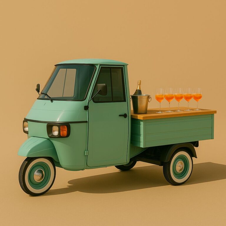 Ape-Rol – die mobile Bar auf drei Rädern für Hochzeiten. Sektempfang, Aperol Spritz und italienisches Flair für euren besonderen Tag.