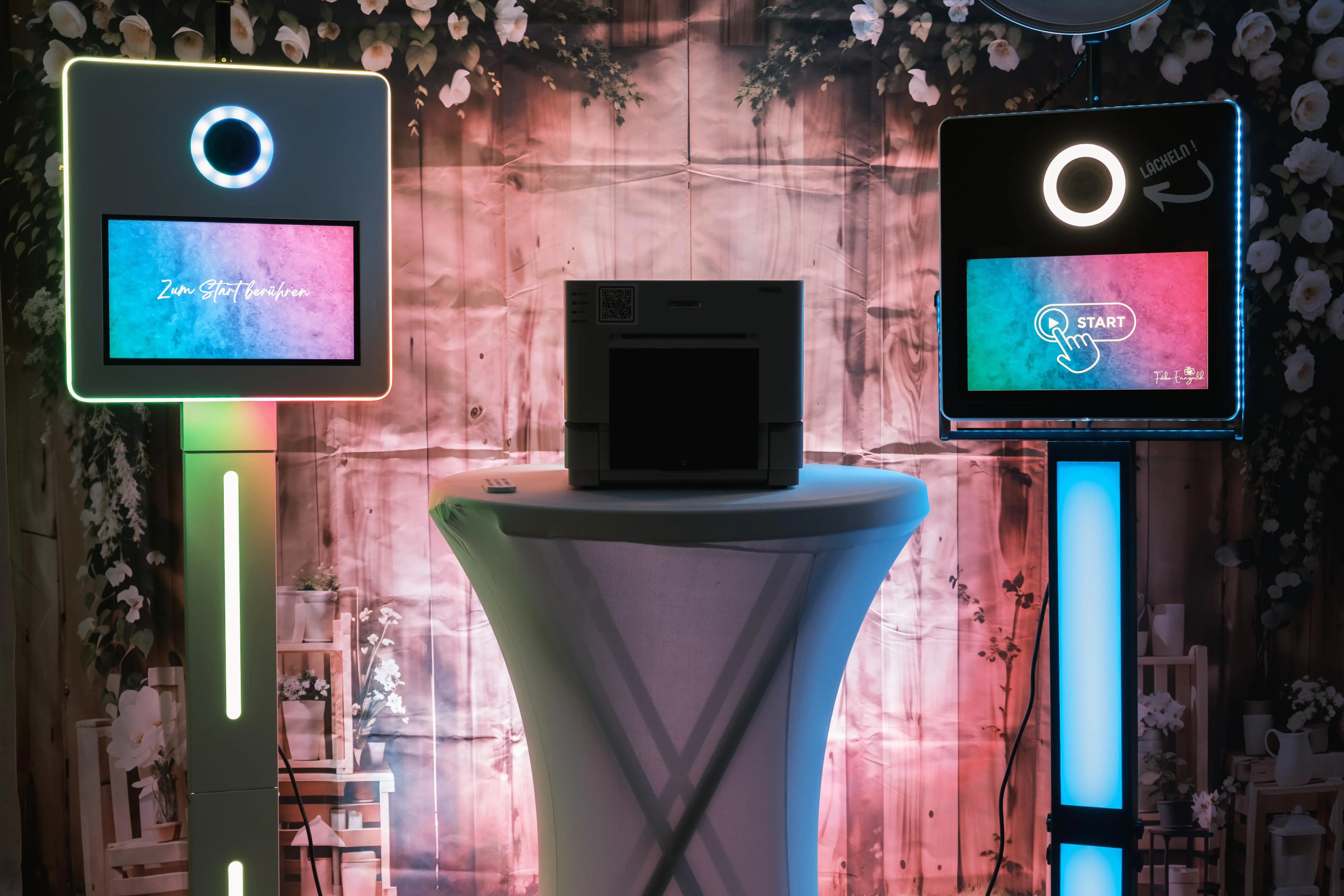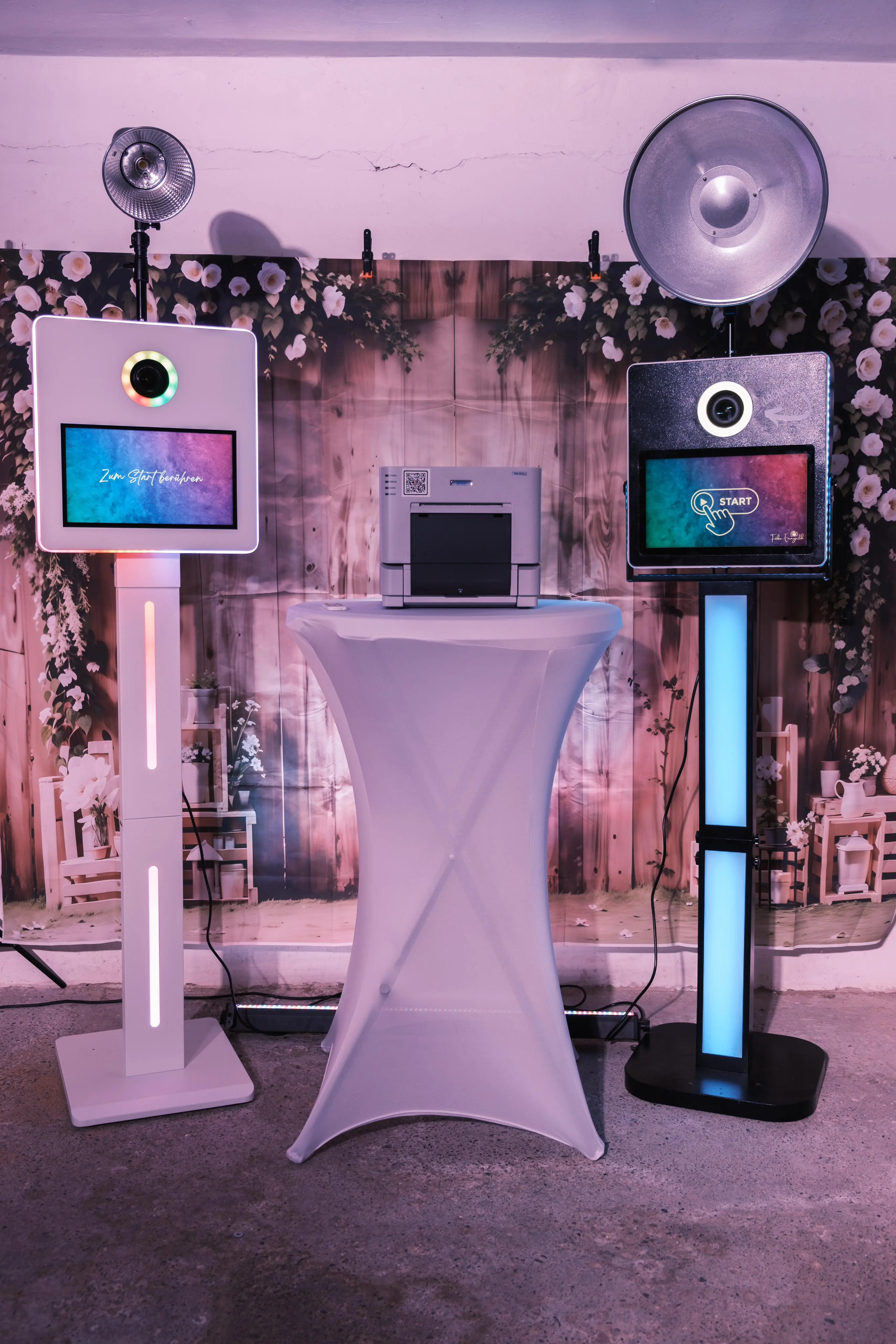 Besonders hervorzuheben sind die eleganten, weißen Fotoboxen, die sich harmonisch in jedes Hochzeitskonzept einfügen – ob Boho, Vintage, klassisch oder modern. Anders als bunte Standardlösungen überzeugen diese Modelle durch ihr stilvolles Design. Sie werden zum dekorativen Highlight im Festsaal oder im Außenbereich und sorgen gleichzeitig für unvergessliche Erinnerungen. Hochwertige Drucke, individuelle Layouts und liebevoll ausgewählte Accessoires machen jede Aufnahme zu einem persönlichen Andenken an euren großen Tag.
