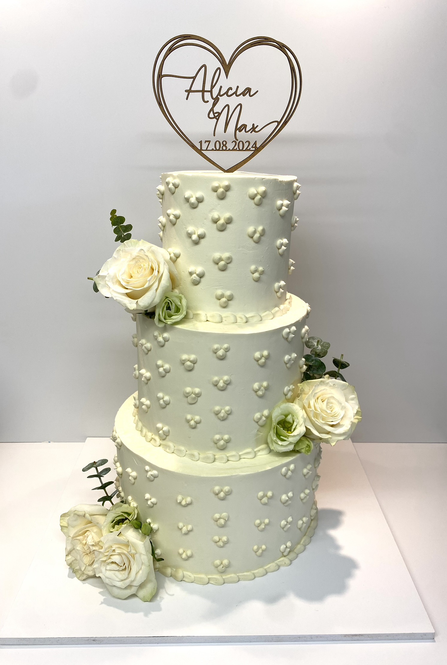 Ein Tag voller Liebe, Lachen und besonderer Augenblicke verdient es, bis ins kleinste Detail perfekt zu sein Eure Liebe ist einzigartig – und genau das soll sich auch in eurer Hochzeitstorte widerspiegeln. Mit viel Herz und Liebe zum Detail gestalte ich für euch eine Torte, die nicht nur wunderschön aussieht, sondern euren besonderen Tag perfekt abrundet. Lasst uns gemeinsam eure perfekte Hochzeitstorte gestalten – abgestimmt auf eure Wünsche, euren Stil und eure ganz persönliche Geschichte. Ich freue mich auf euch! 🌸
