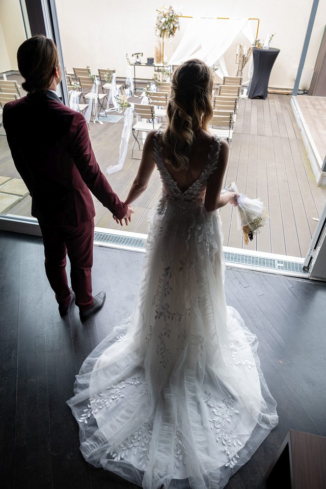 Die Location befindet sich in einer modernen Tanzschule und bietet euch vielseitige Möglichkeiten für euren Hochzeitstag. Besonders beliebt ist die freie Trauung auf der Dachterrasse: Unter freiem Himmel, mit Außentanzfläche und urbaner Kulisse entsteht hier eine ganz besondere Atmosphäre – modern, entspannt und dennoch emotional. Für euer Hochzeits-Fotoshooting bietet der nahegelegene Klosterplatz eine wunderschöne, kontrastreiche Kulisse aus Architektur und Stadtleben.