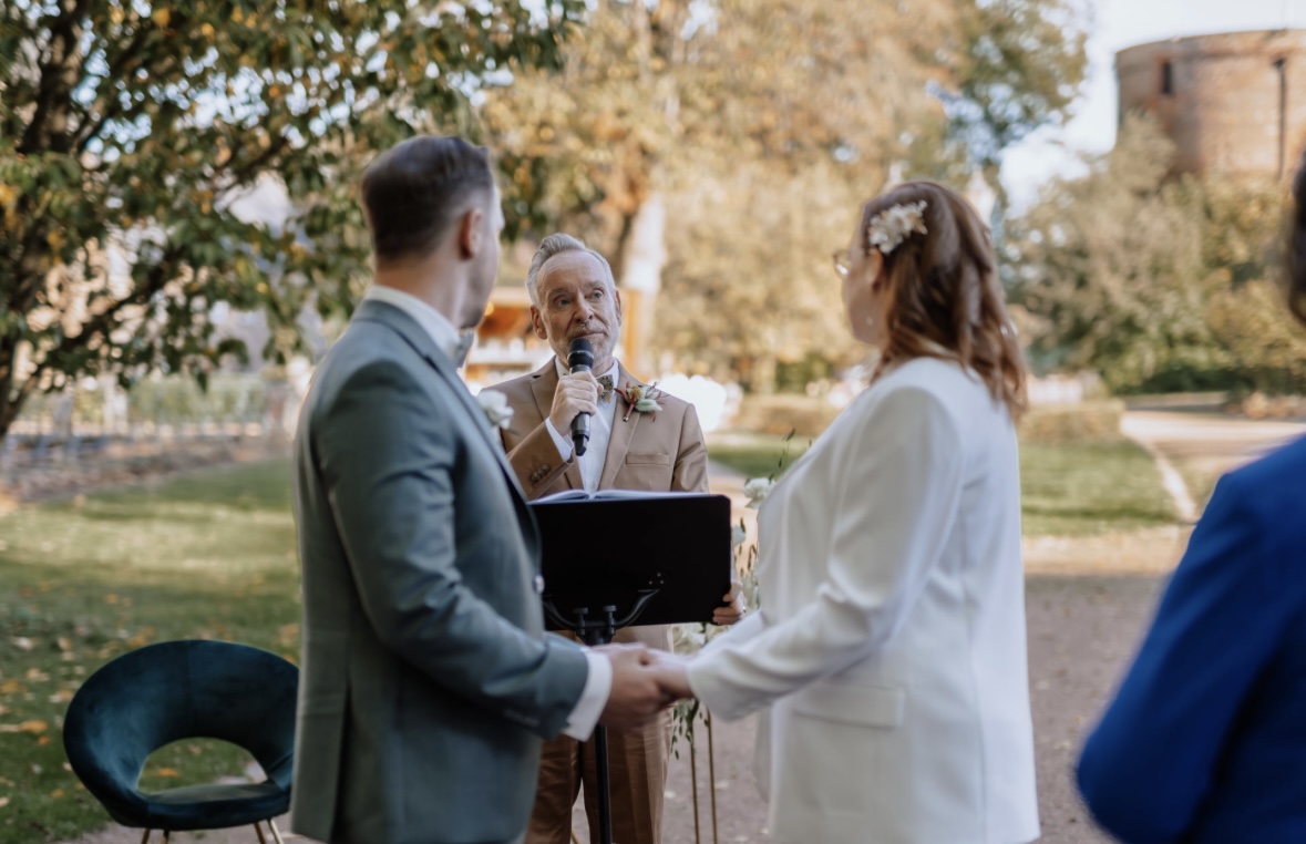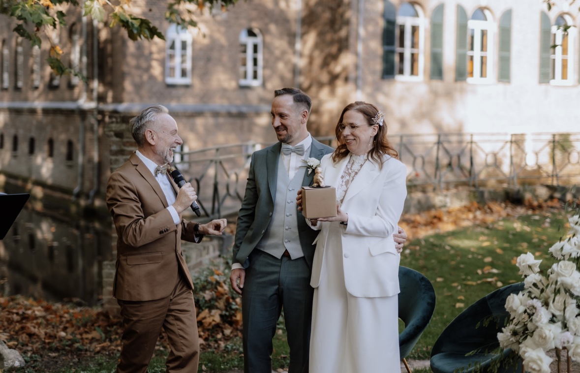 Lebensfroh, verbindlich und kreativ baue ich die Beziehung zu “meinen”Paaren auf, um schließlich eine persönliche und nur für Euch verfasste Rede zu schreiben. Bei den Vorgesprächen suche ich gemeinsam mit Euch nach Verbindungen, nach Geschichten und Anekdoten.