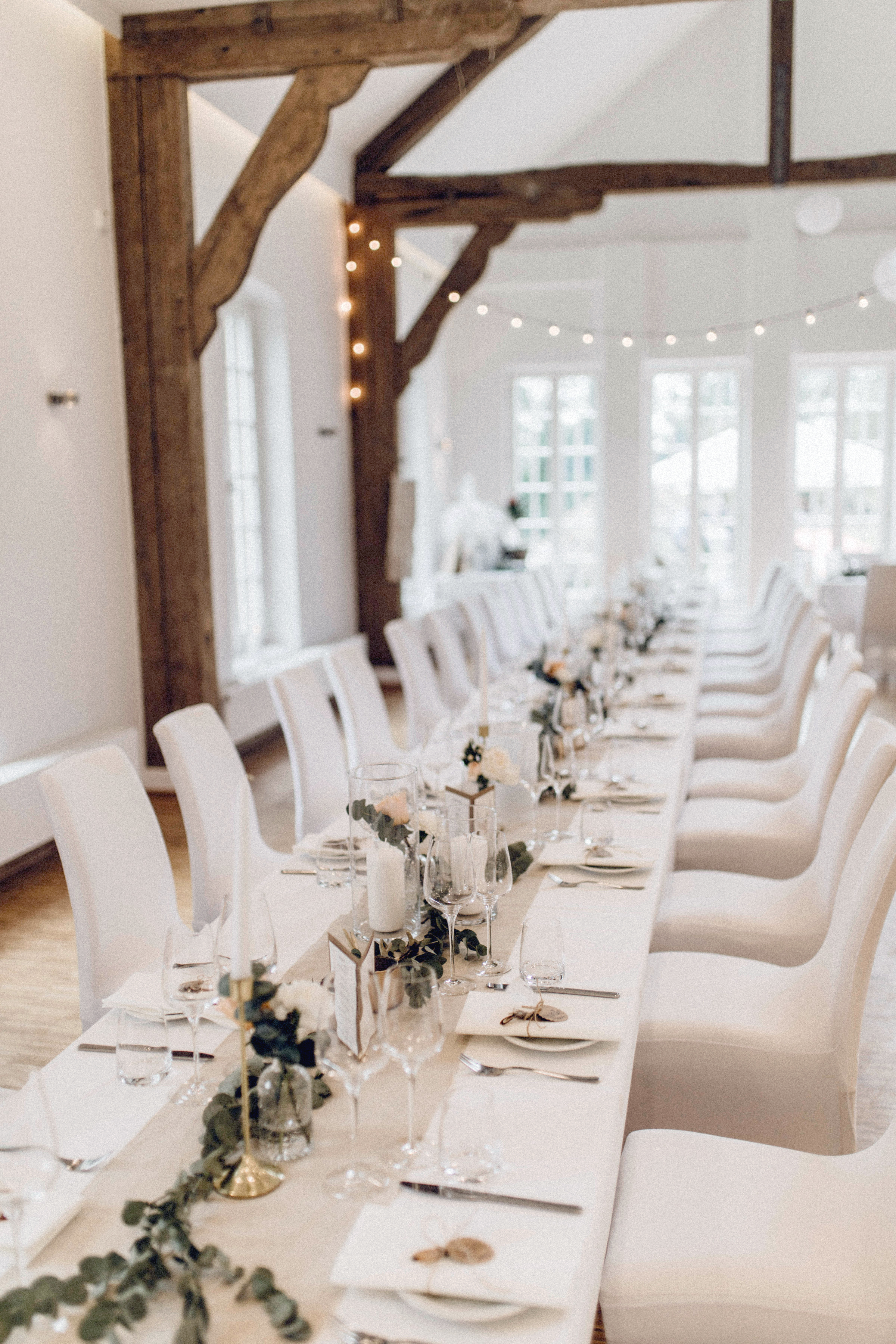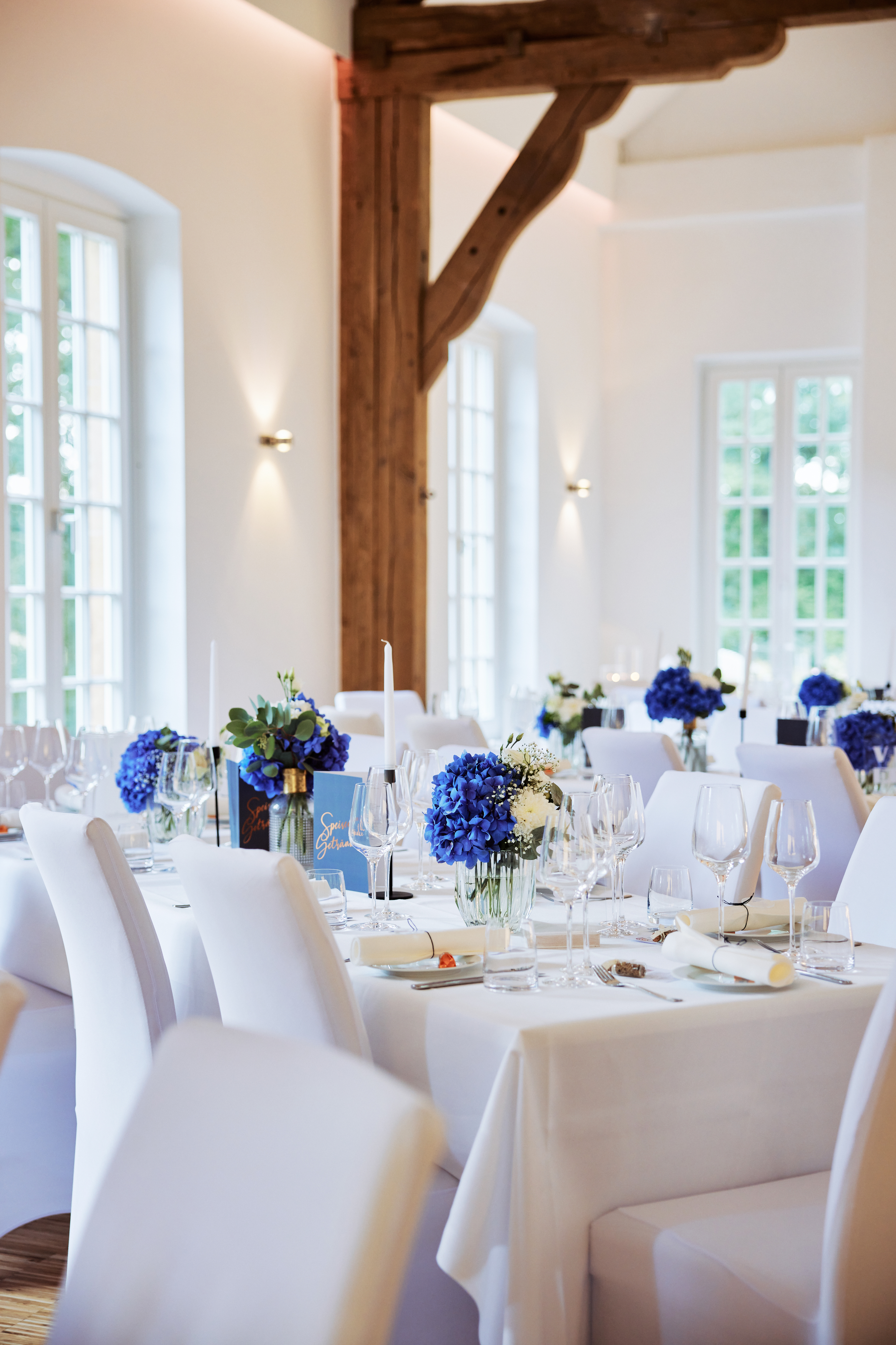 Im Anschluss wird im Schloss gefeiert: großzügig, hochwertig und mit einer festlichen Atmosphäre, die eure Hochzeit zu etwas ganz Besonderem macht. Die Kombination aus historischer Architektur und moderner Ausstattung schafft ein stilvolles Gesamtbild.