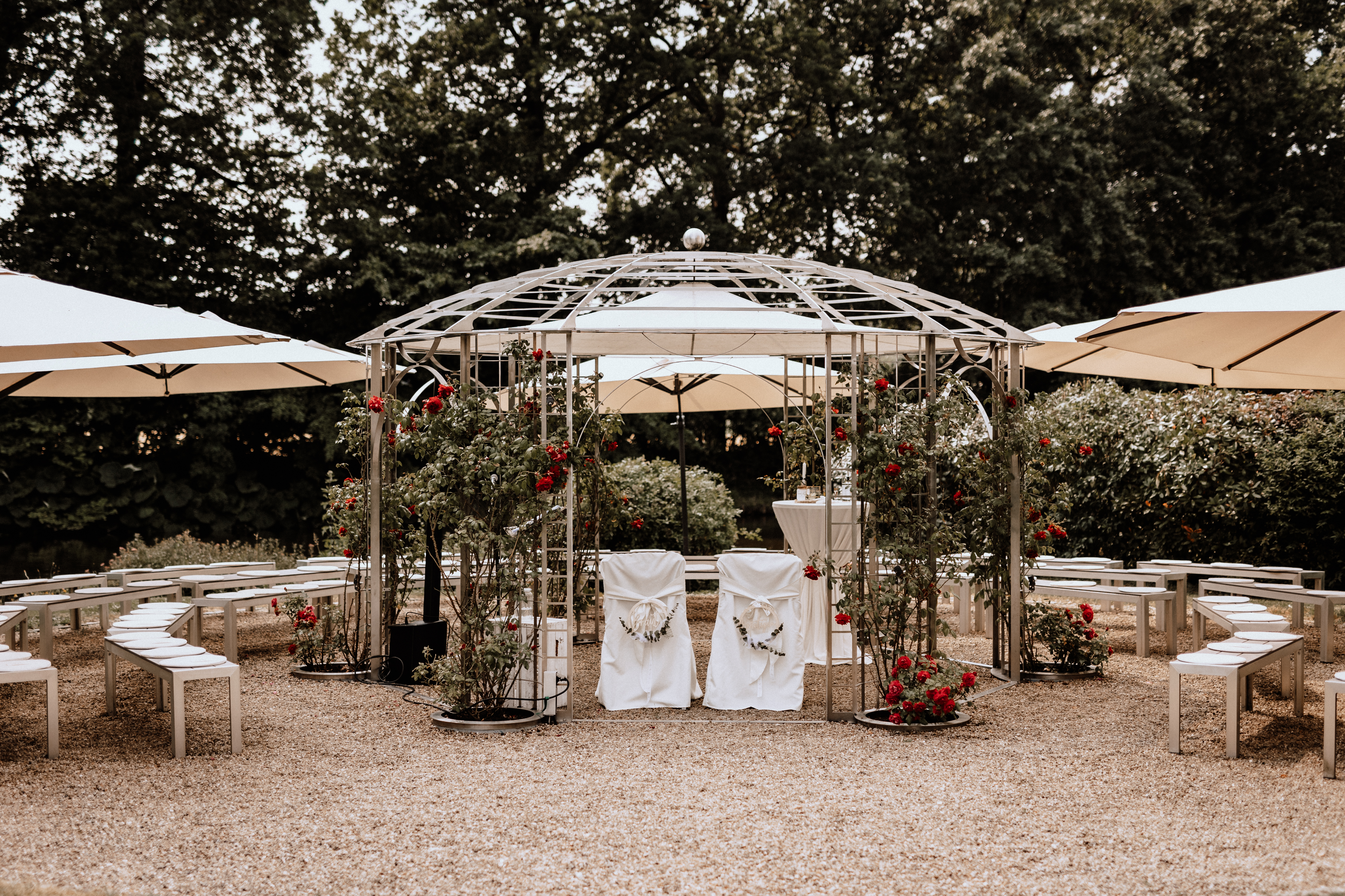 Der liebevoll angelegte Rosengarten bietet den perfekten Rahmen für eine freie Trauung unter freiem Himmel. Hier entstehen ganz besondere, emotionale Momente – eingebettet in eine ruhige, natürliche Umgebung.
