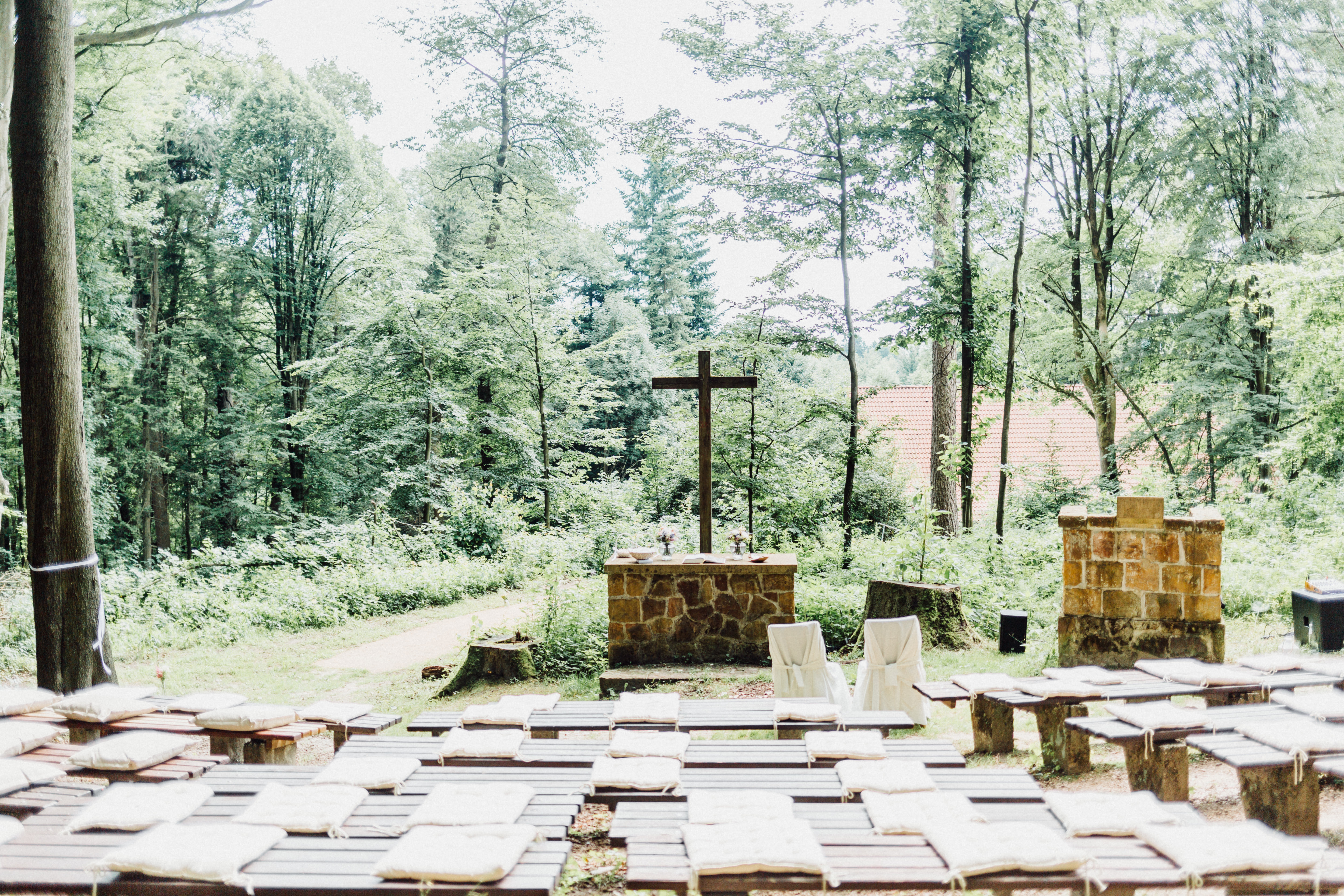 Umgeben von Natur bietet die Location den perfekten Rahmen für eine freie Trauung unter freiem Himmel. Besonders unsere Freiluftkapelle schafft eine sehr besondere, emotionale Atmosphäre – mitten im Wald und im Kreis eurer Gäste.